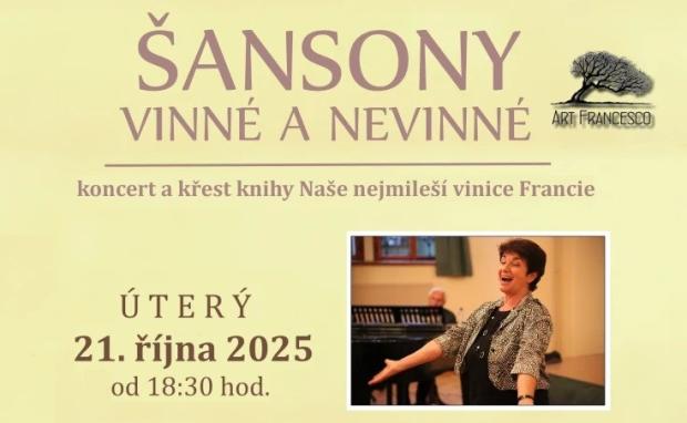 Malé hudební zastavení věnované kouzlu francouzských šansonů a Francie. V rámci koncertu proběhne křest knihy CESTY PO FRANCOUZSKÝCH VINICÍCH.